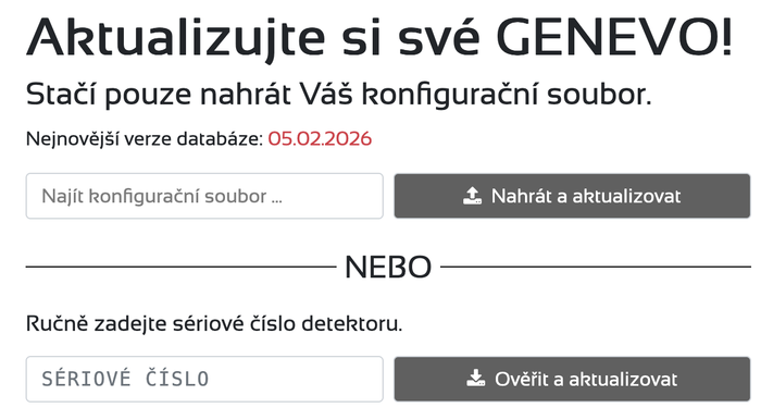 You can either upload a configuration file from your device, or you can fill in the details manually, where you need to know the type of your antenna (in the case of GENEVO PRO) and the serial number. You can choose between these methods on the main page.